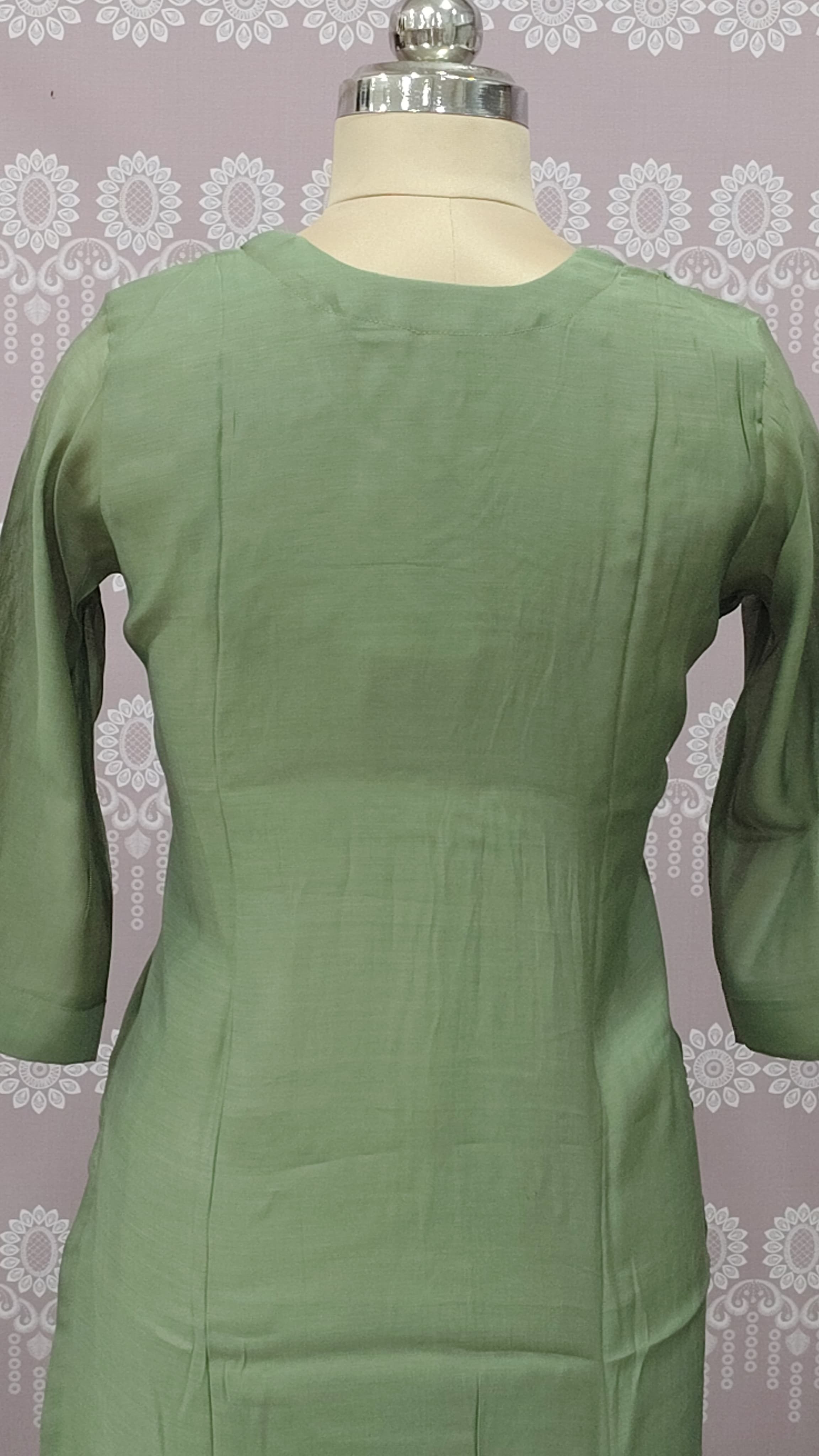■ Fabric: Light, smooth fabric with a soft sheen, likely chanderi or silk-blend.