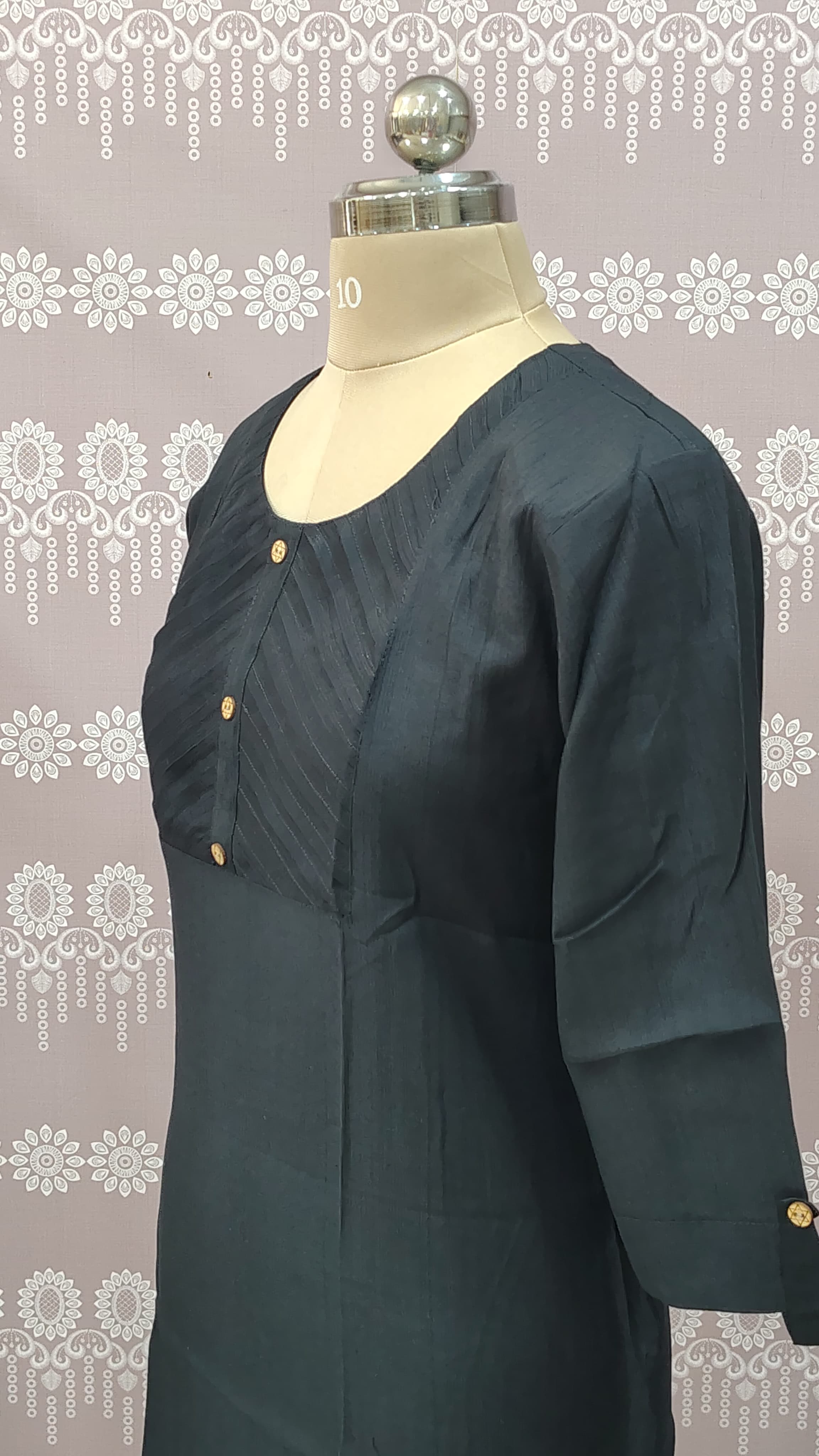 > Style: A straight-cut black kurti top