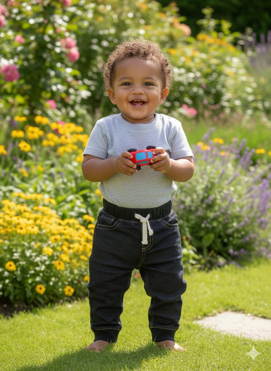 Keep your little one comfy and stylish with these adorable baby dark denim blue jogger pants. Designed with a soft elastic waistband and adjustable drawstring, these pants ensure a snug yet gentle fit for all-day comfort. The ribbed cuffs give a sporty jogger look while keeping the pants in place during playtime. Made from lightweight, breathable denim with contrast stitching, they offer the perfect blend of style and ease. Ideal for daily wear, outings, or casual play.